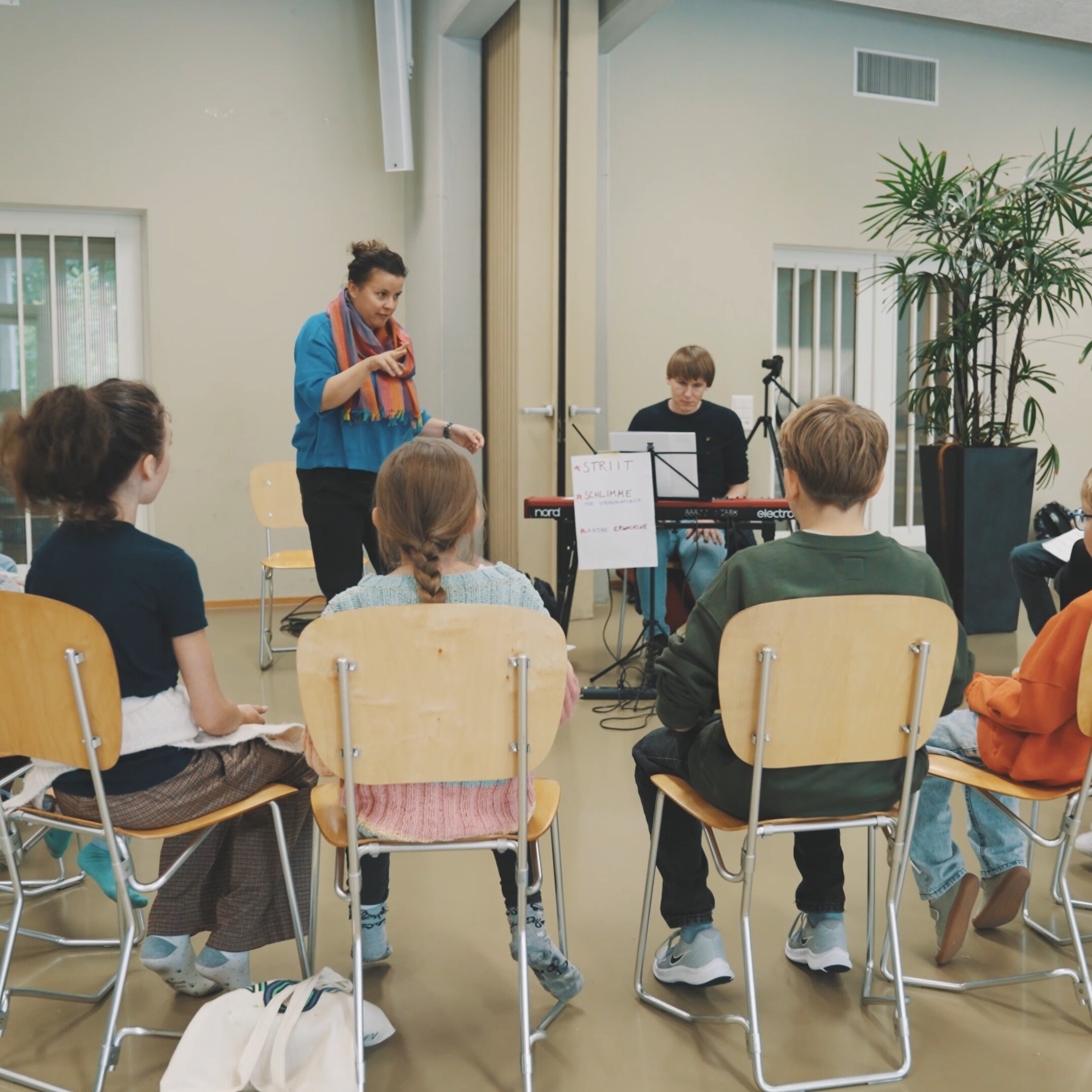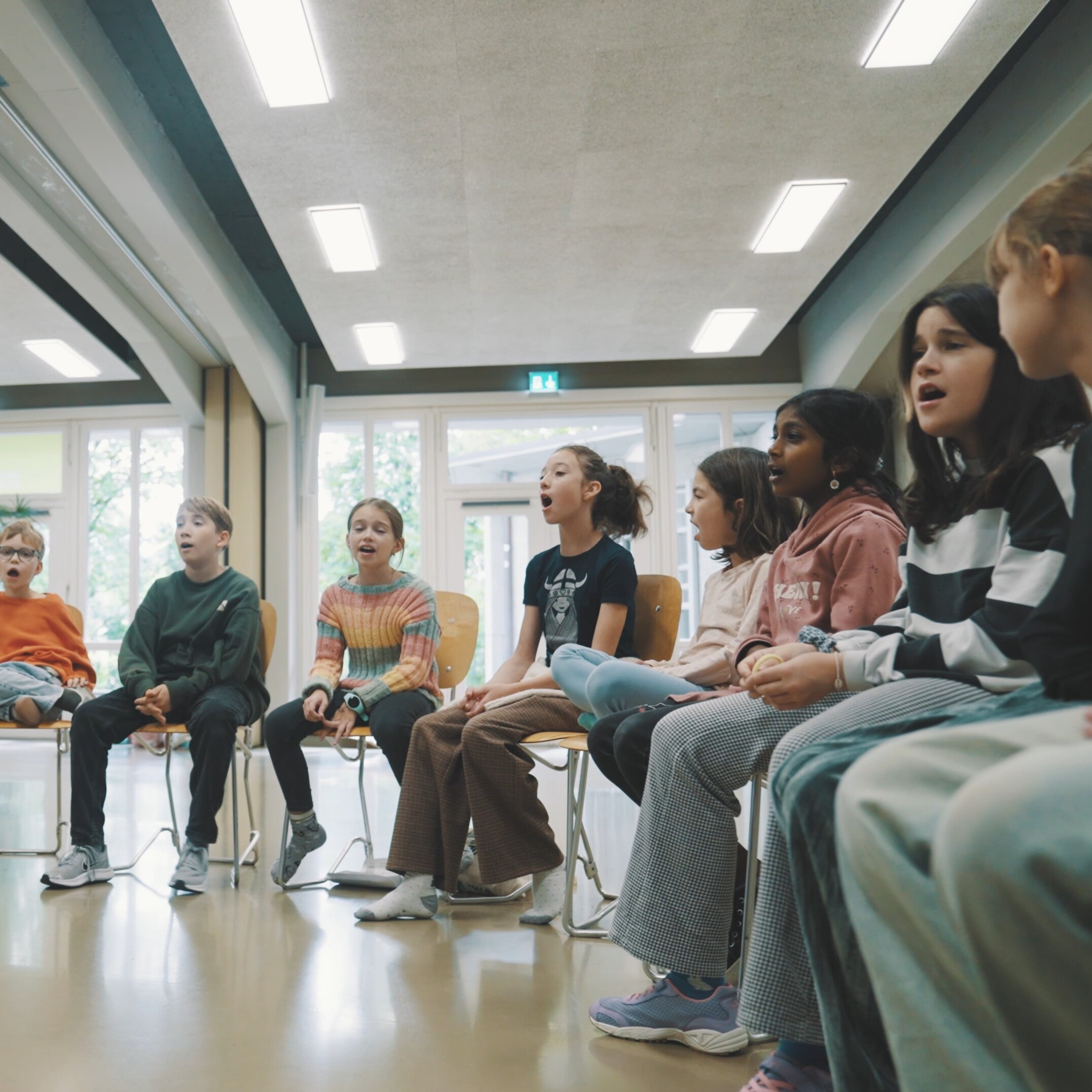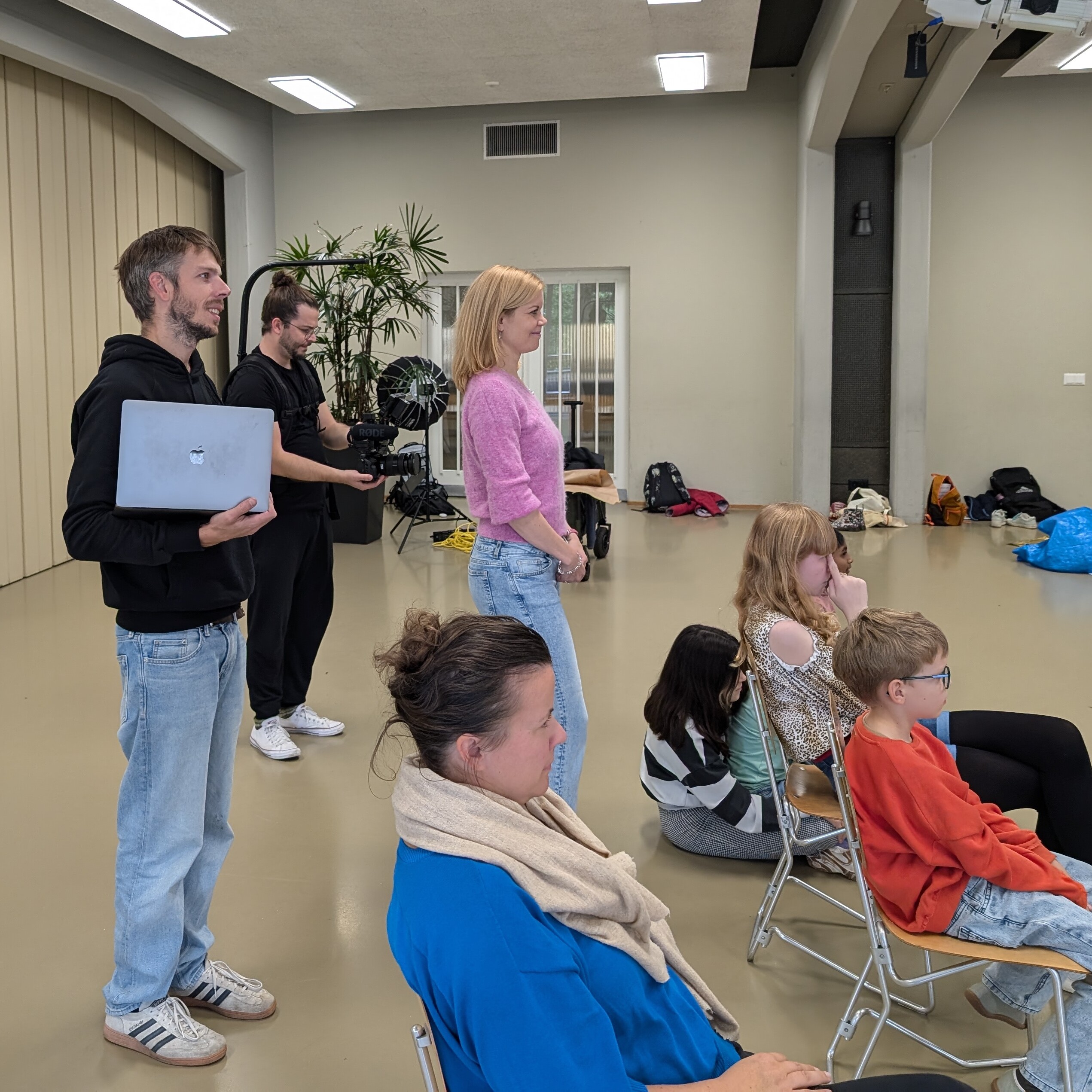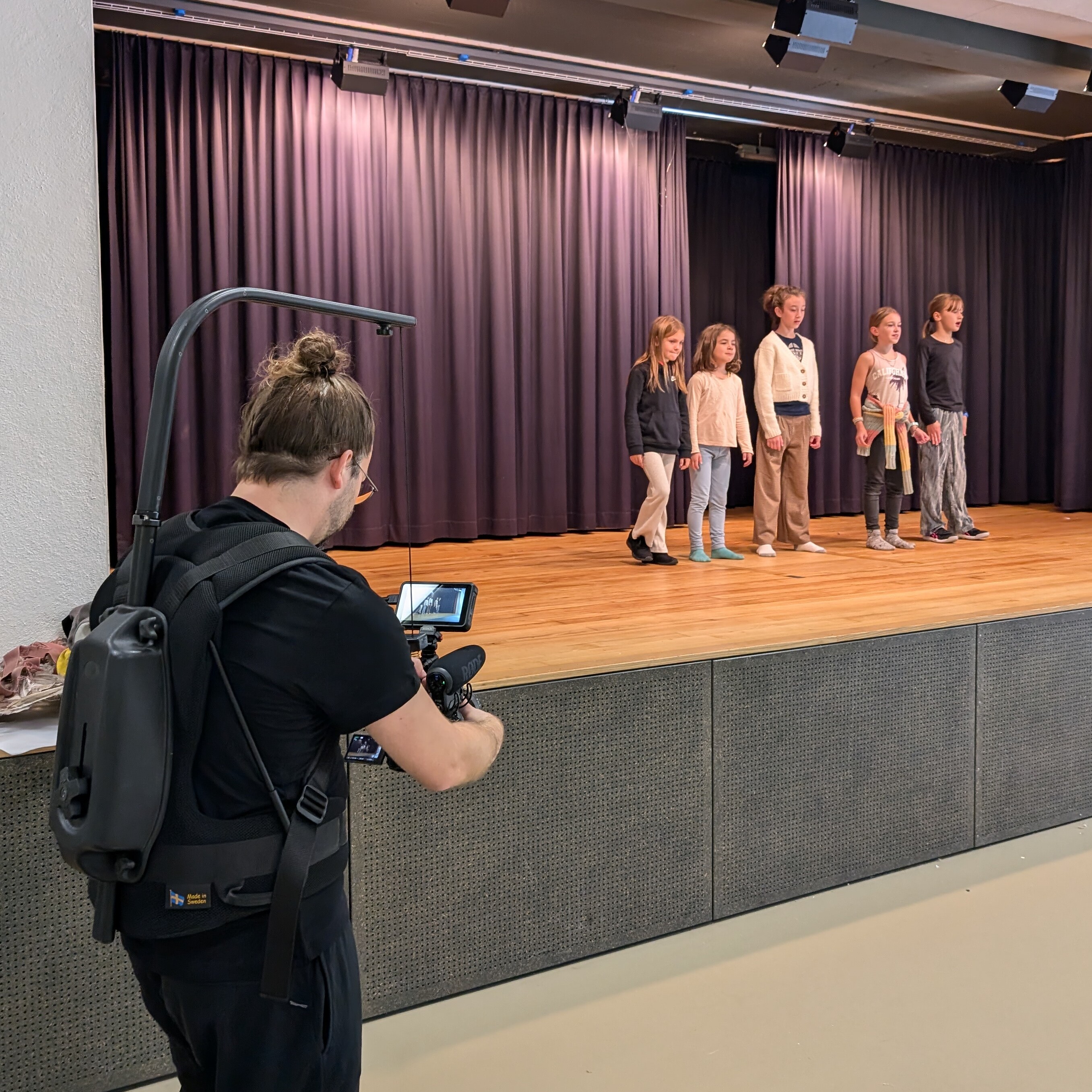 10. Oktober 2024Die Aufregung wird grösser, wenn nicht nur Augen, sondern auch die Kameralinse auf die Kinder und ihre Lehrerin, Frau Schwendener (Lea Oxley), gerichtet ist. Zusammen mit unserem Filmer Christian Felber entstanden erste Probeaufnahmen. Dabei konnten wir nicht nur Lichtverhältnisse und Technisches testen, sondern die Kinder auch mit dem Ablauf von Dreharbeiten vertraut machen.