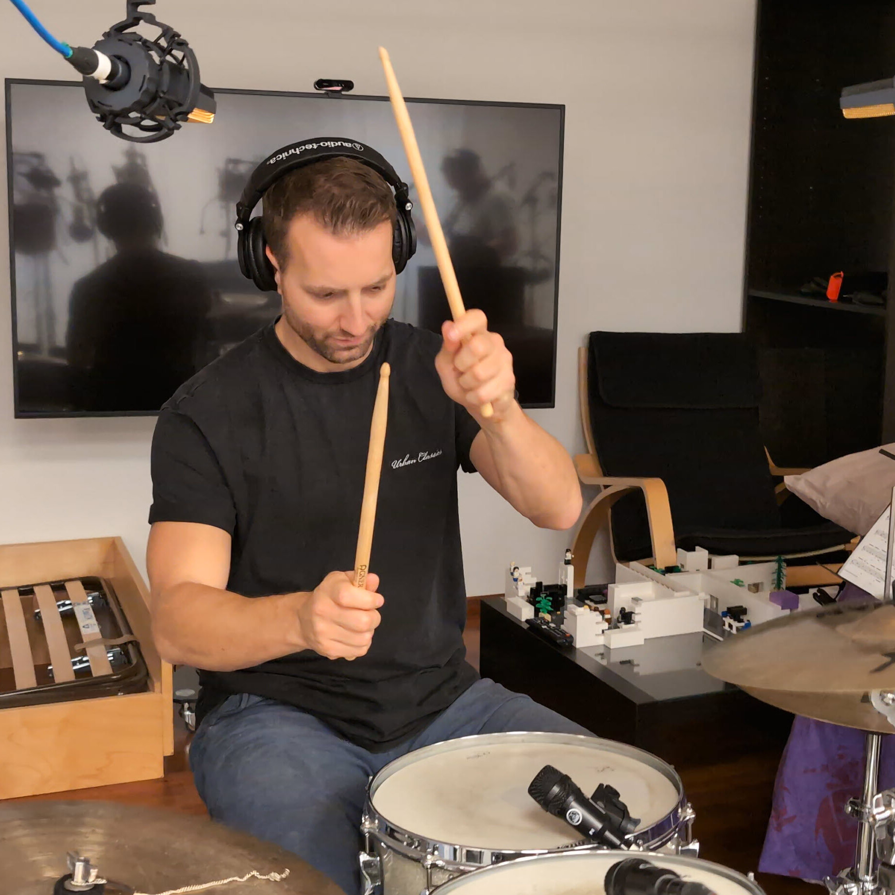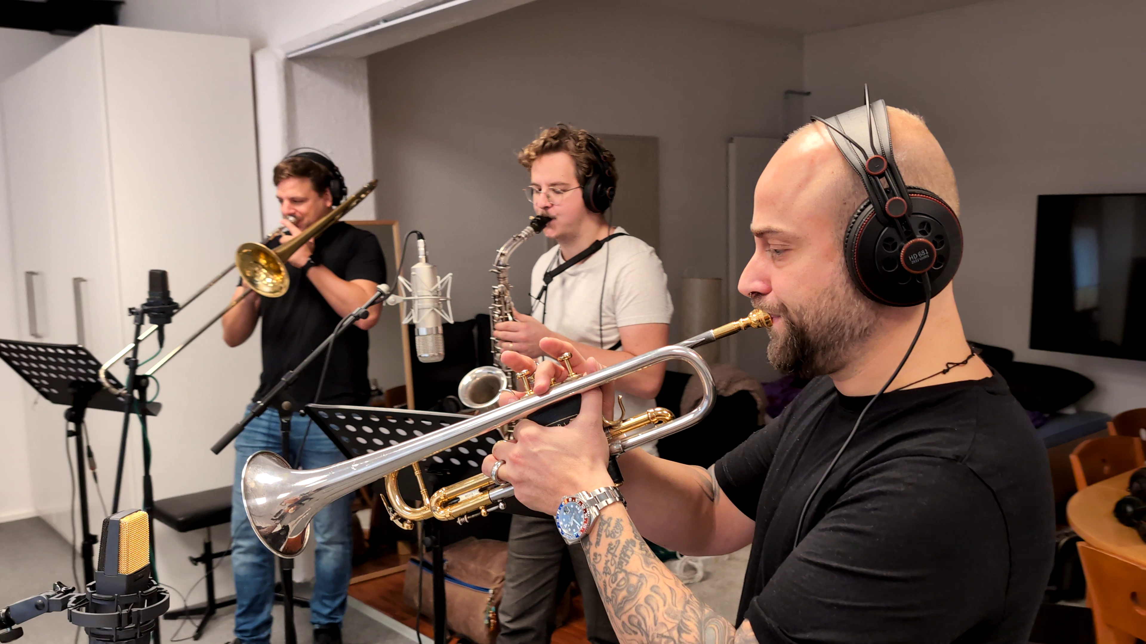 30. Oktober 2024Nebst orchestraler Musik gibt es insbesondere im Mittelteil des Films auch Bedarf nach einem treibenden Musical-Sound. Immer wieder sind darum Zentralschweizer Musiker im "Studio" zu Gast, um mit ihrer Kreativität und Musikalität zum Projekt beizutragen.